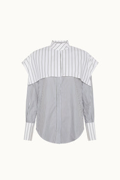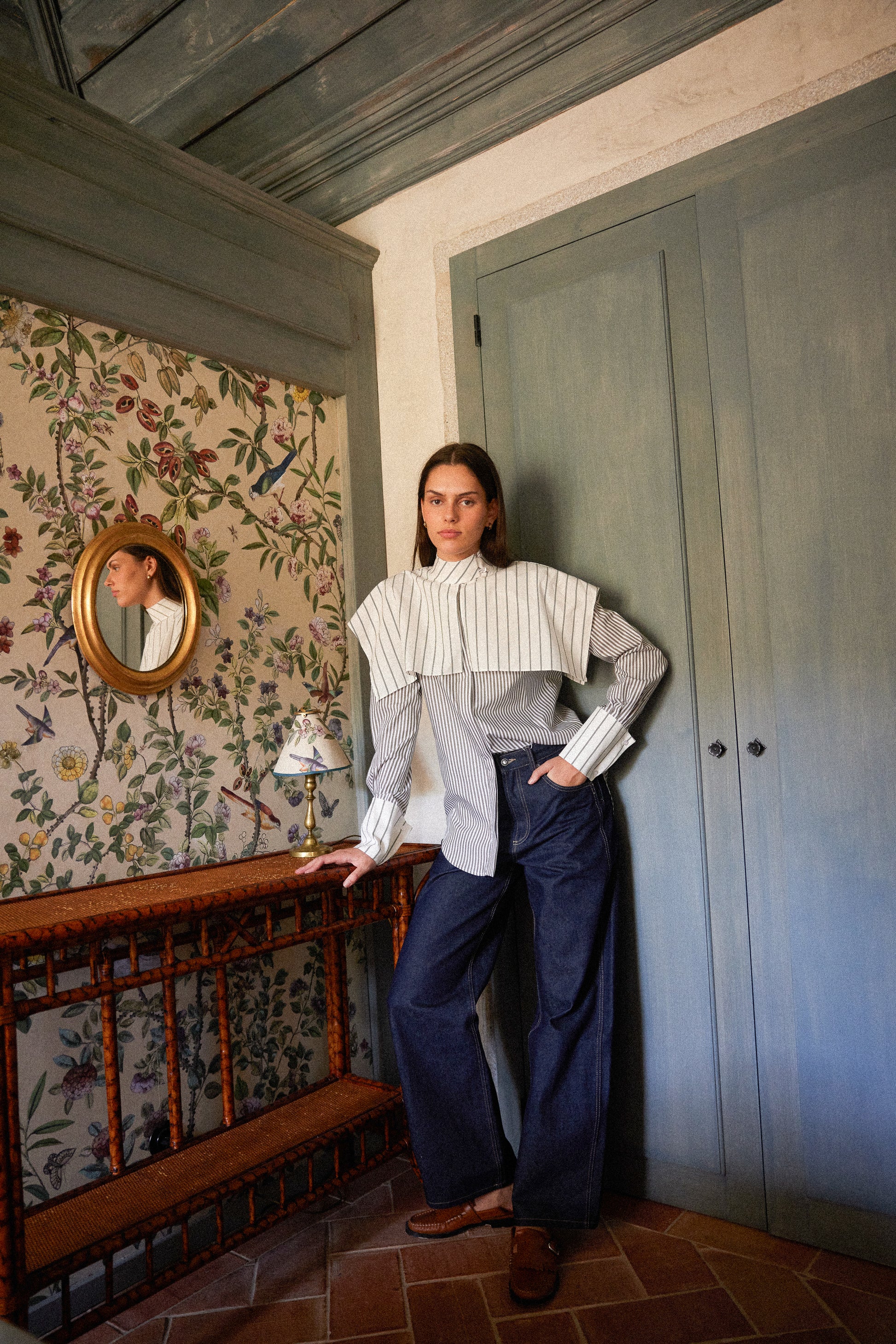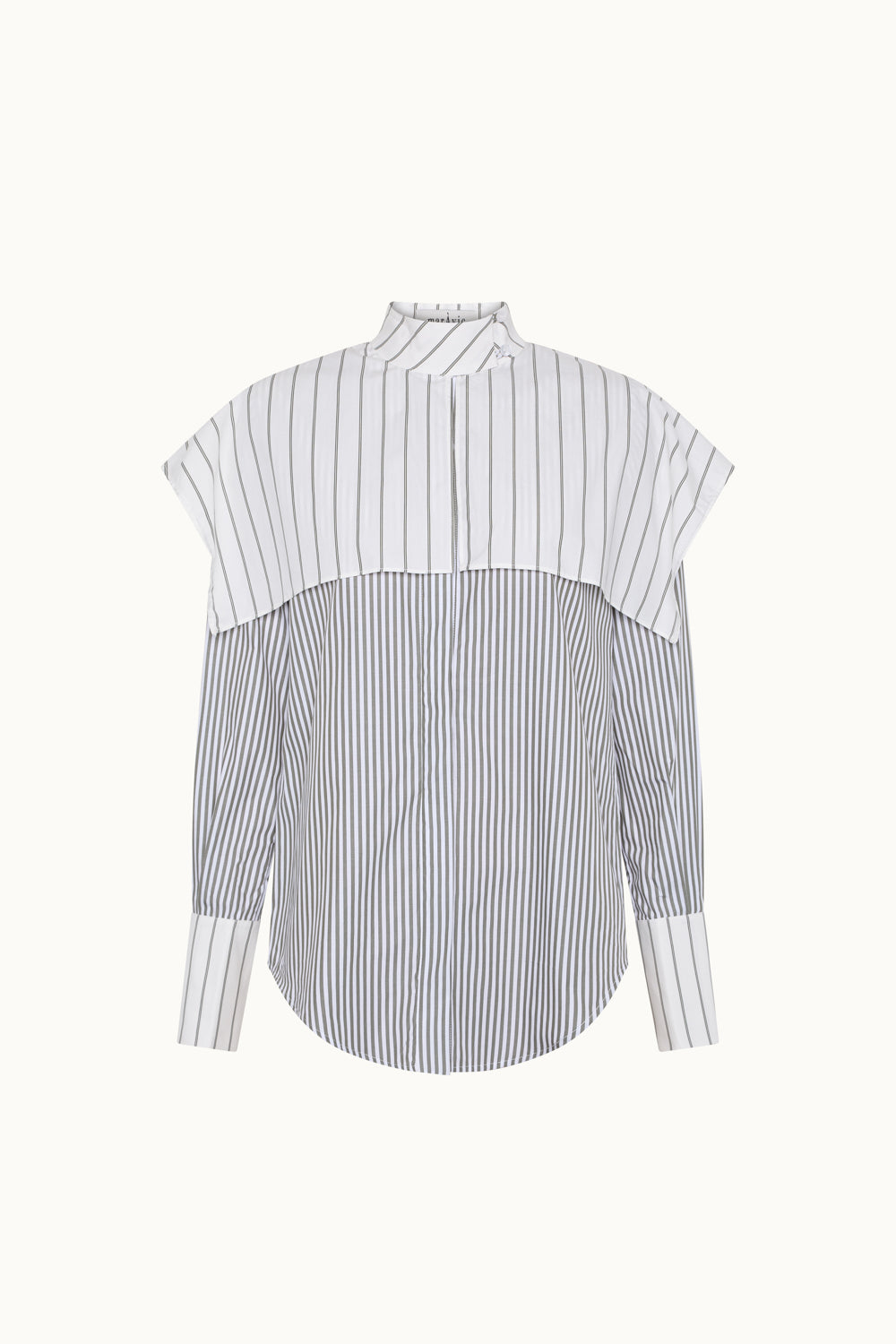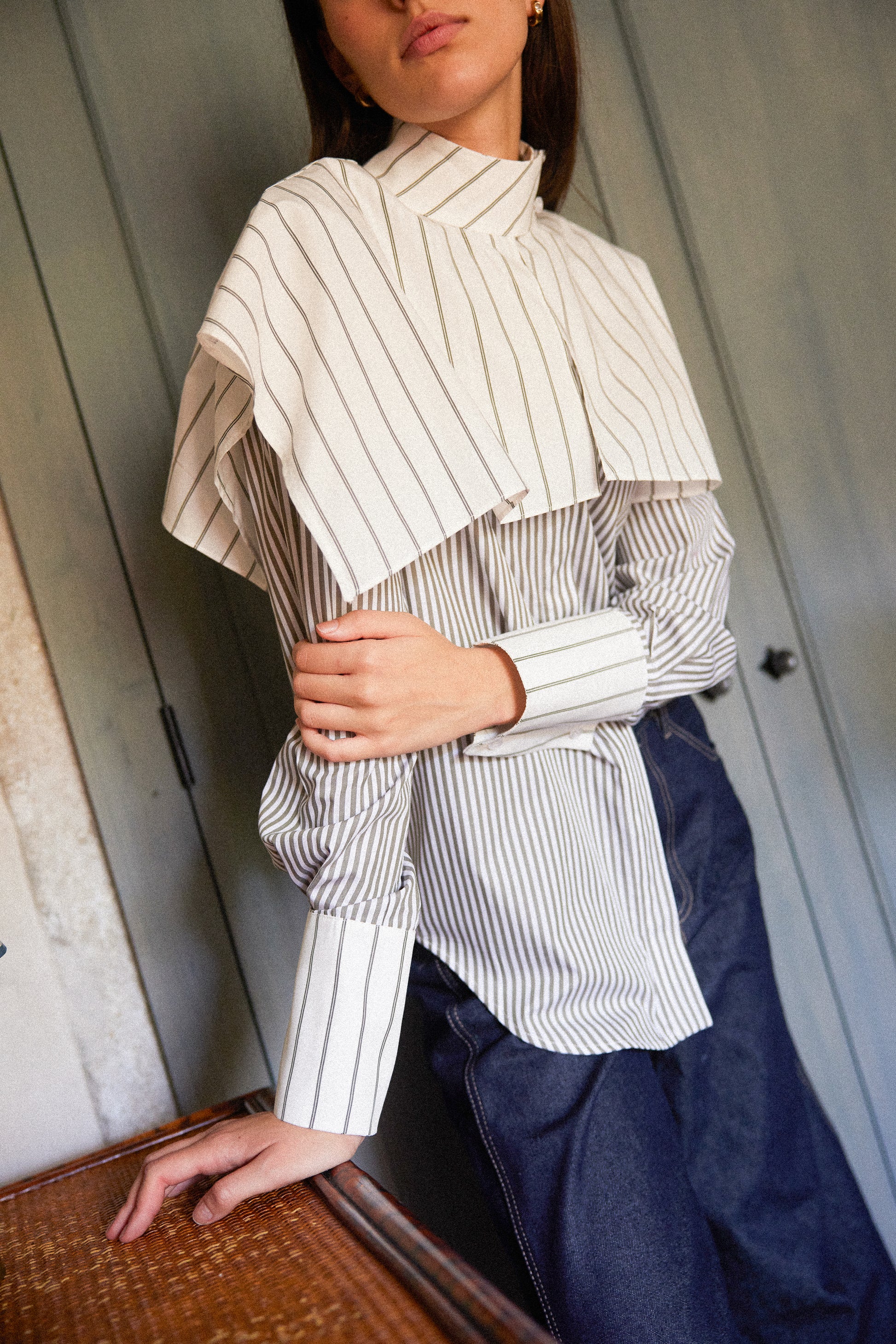 Camisa capa confeccionada en un tejido a rayas blanco y azul combinado en 100% algodón.