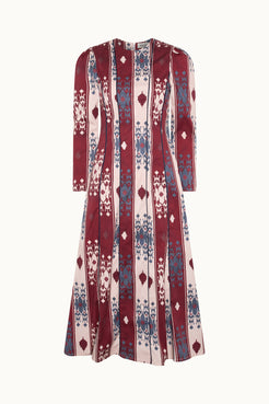 Acacia is a beige striped dress in a linen and cotton fabric. It has a gathered halterneck with a bow that you can a...