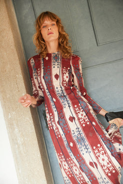 Acacia is a beige striped dress in a linen and cotton fabric. It has a gathered halterneck with a bow that you can adjust to the size you like best, being able to try a different way to tie it every time you wear it. It will be the most stylish dress in your entire wardrobe.