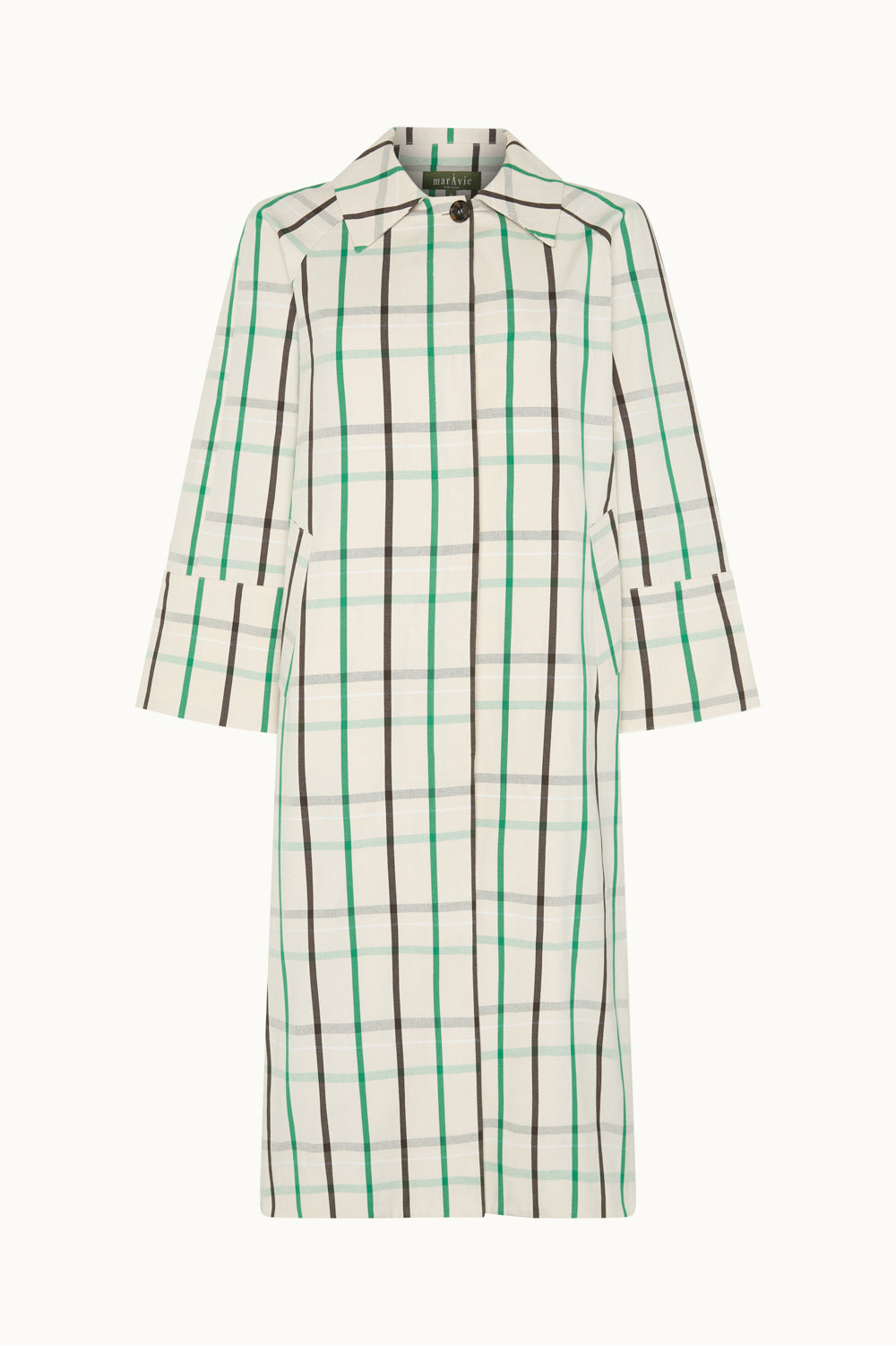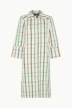Gabardina a cuadros blanca. Confeccionada en un tejido 100% algodón. Cierre frontal con botones ocultos y dos bolsill...