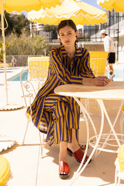 Vestido camisero Ancora a rayas amarillas y moradas. Con el te sentirás estilosa y a la vez cómoda para cualquier pla...