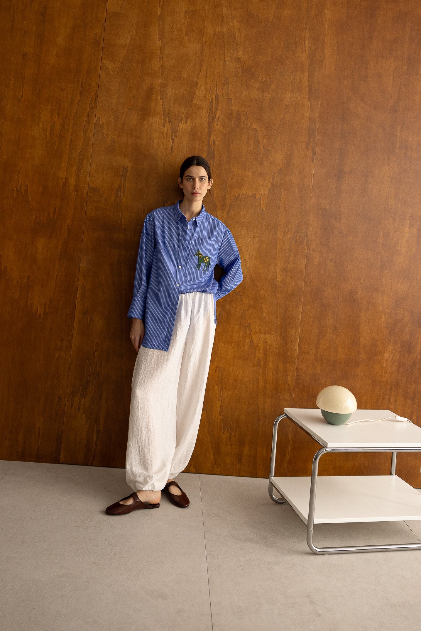 Camisa a rayas azul y blanca confeccionada en 100% algodón. Destaca el dibujo de caballo en el lado izquierda. Perfecta y estilosa para cualquier look.