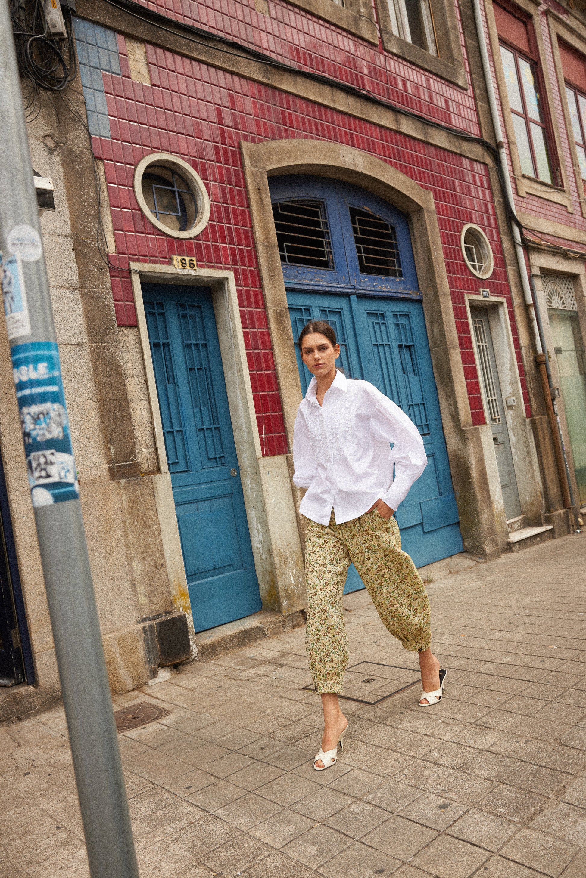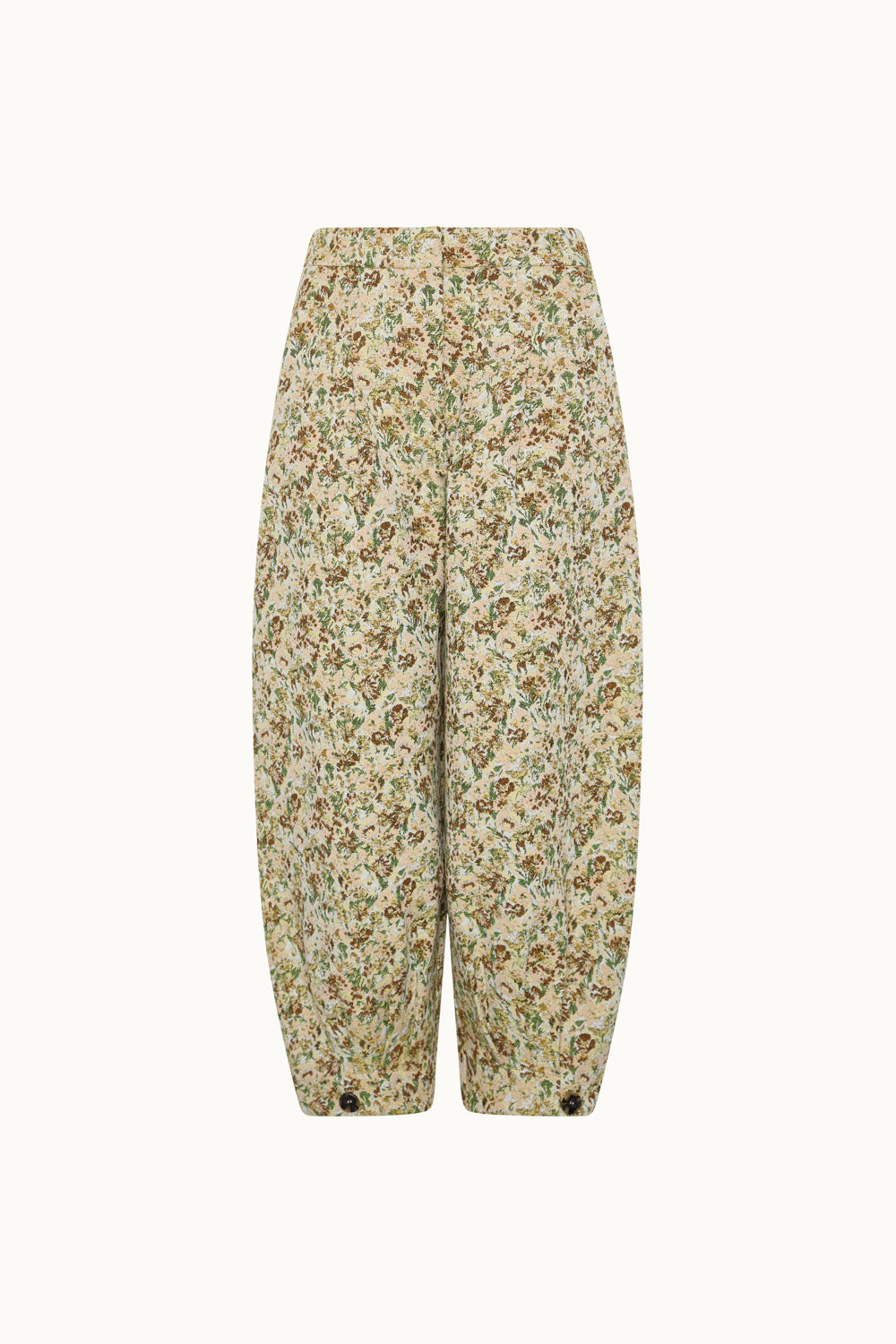Pantalones estampado flora bombachos. Cierre en el bajo con botón.