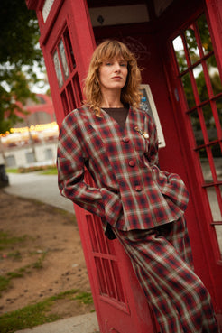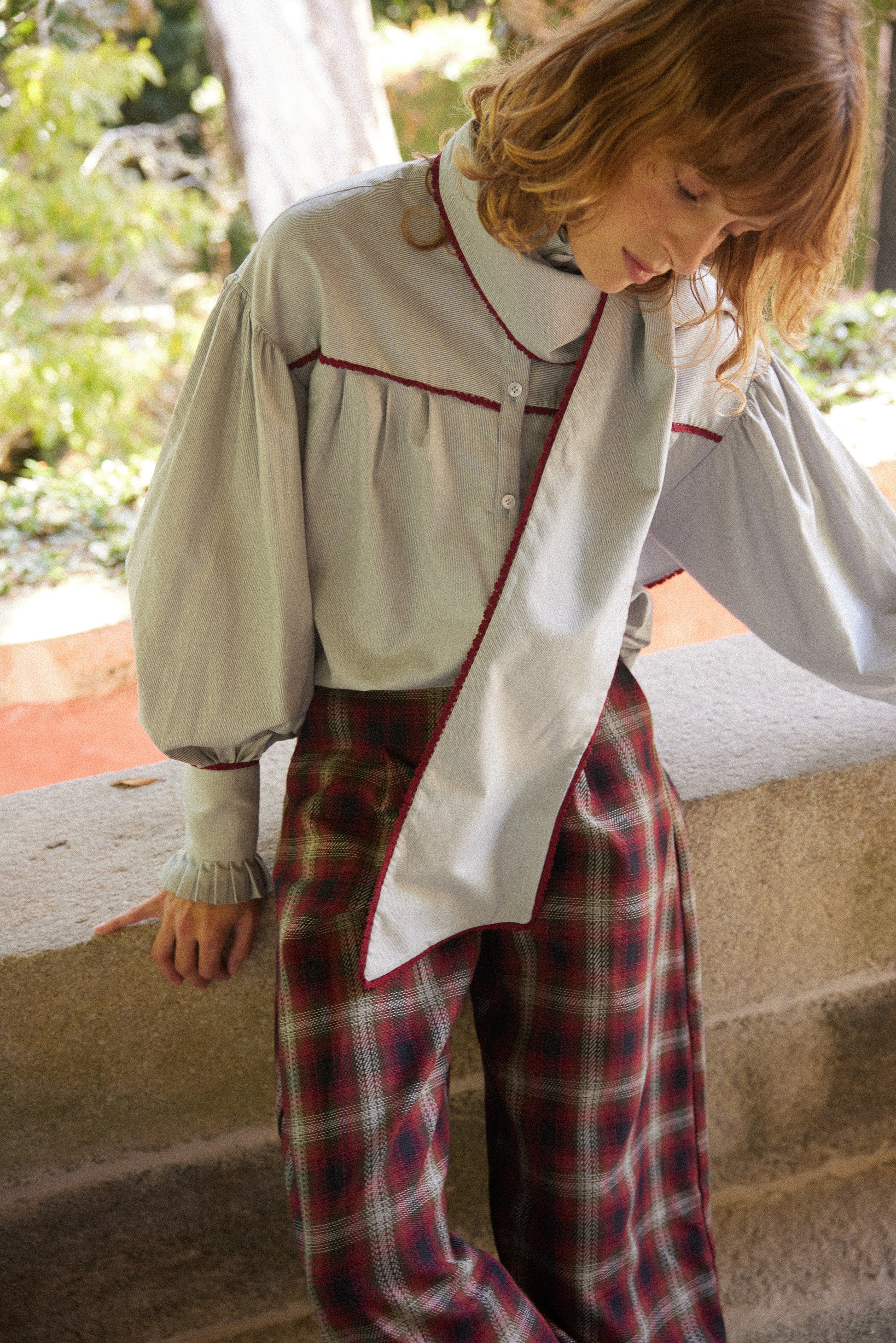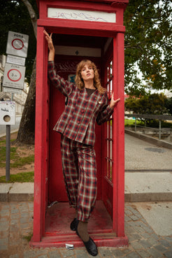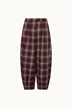 Pantalones a cuadros bombachos. Cierre en el bajo con botón.
