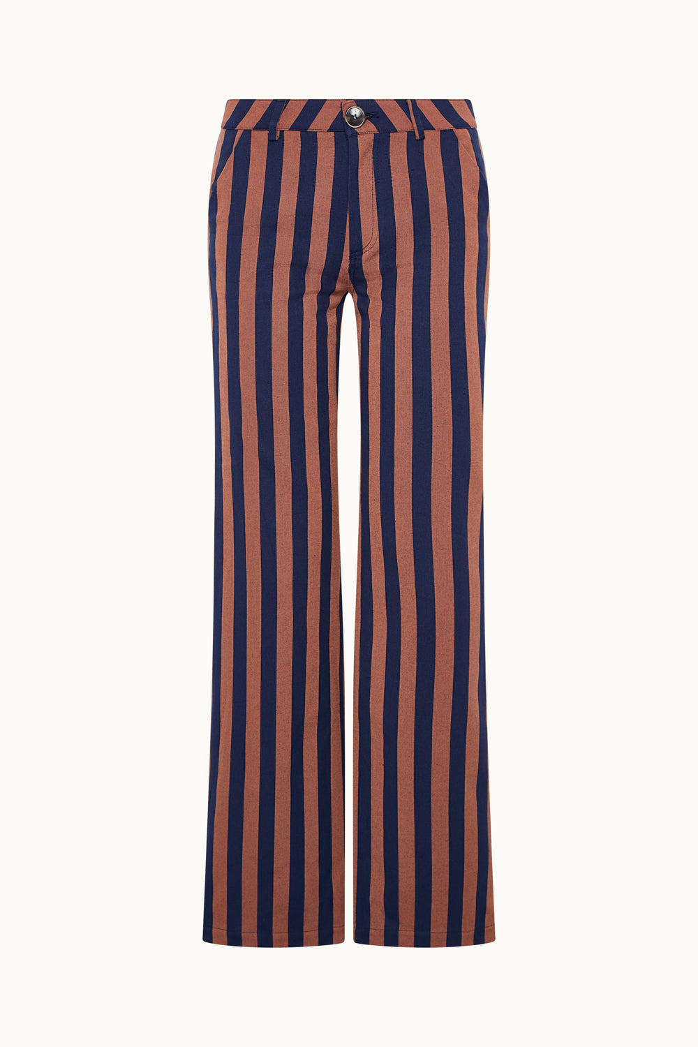 Pantalón tiro medio, confeccionado en tejido 100% algodón. Bolsillos delanteros y bolsillos de plastrón en espalda. Corte recto. Cierre frontal con cremallera y botón.